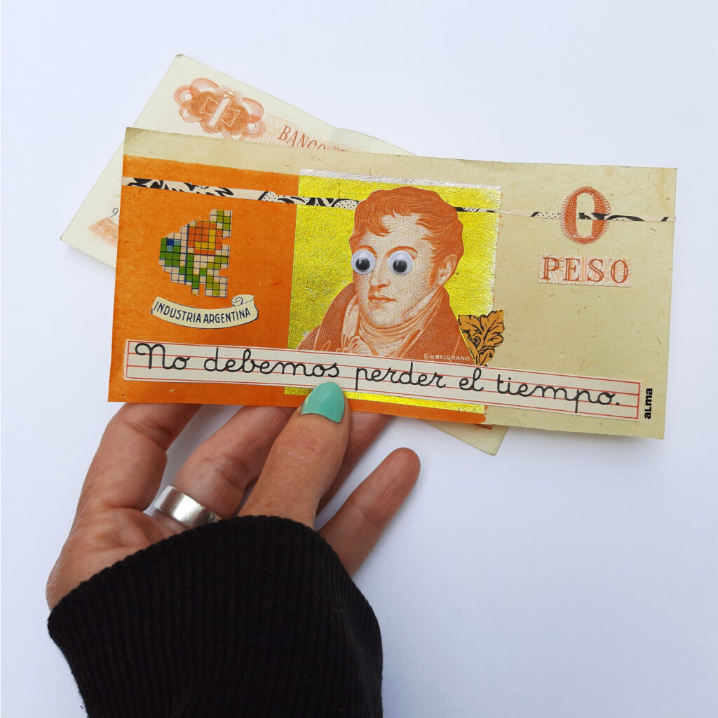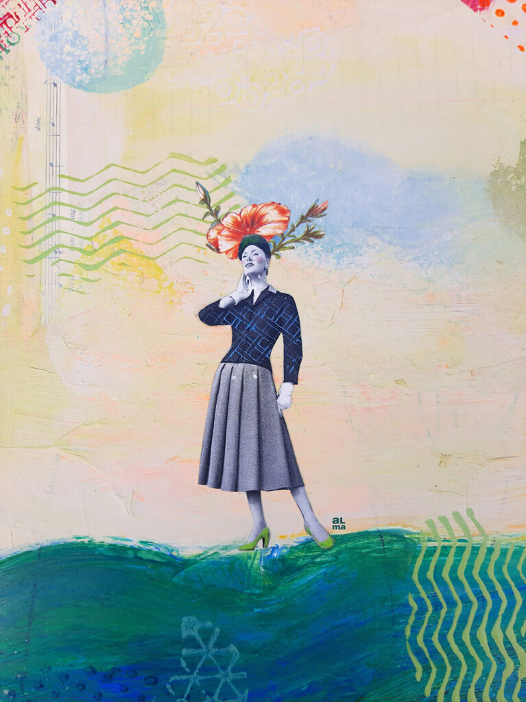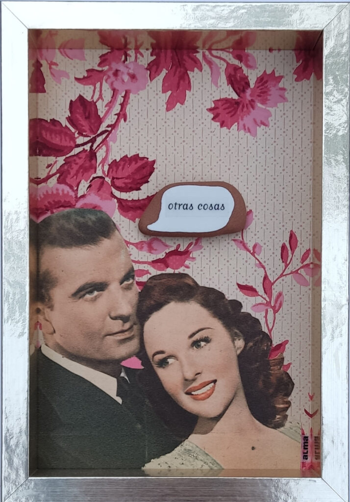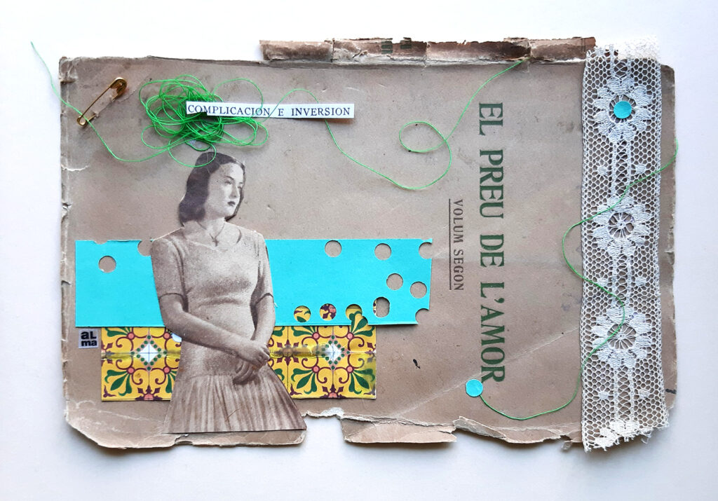 Investigo combinando técnicas para dar una respuesta visual al concepto que necesite comunicar. Me interesa especialmente trabajar sobre la memoria, el presente que construyo a partir de recuerdos vividos, aprendidos, incluso olvidados. Hago collages con materiales que antes fueron deshechados; los re-significo en una nueva obra, donde a su vez el observador descubre su propia interpretación.