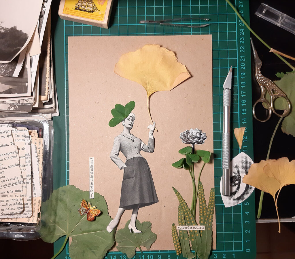 Actualmente trabajo como ilustradora freelance e imparto talleres de collage para adultos y talleres extra-escolares para niños (arte experimental y stop-motion).