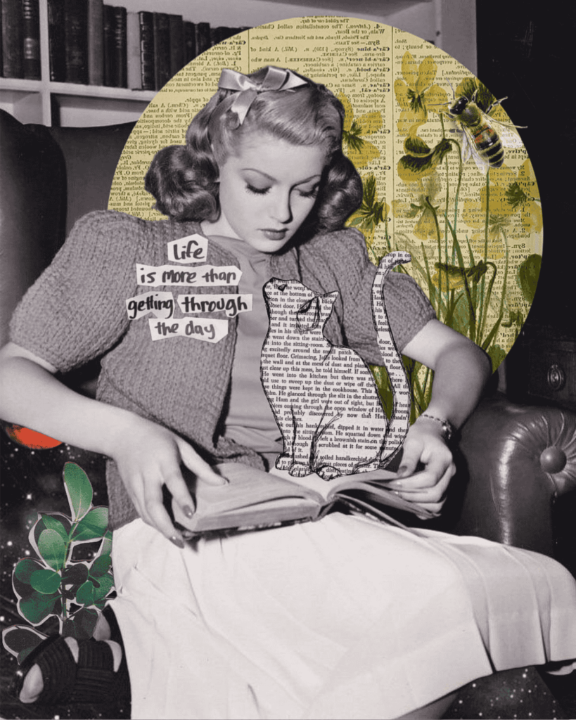 No meio das mudanças que a maternidade trouxe, senti uma necessidade profunda de me expressar de um jeito novo, sem regras, sem prazos, apenas pela vontade de criar. Foi assim que descobri a colagem — um espaço onde posso brincar com formas, cores e significados, transformando fragmentos em novas histórias.