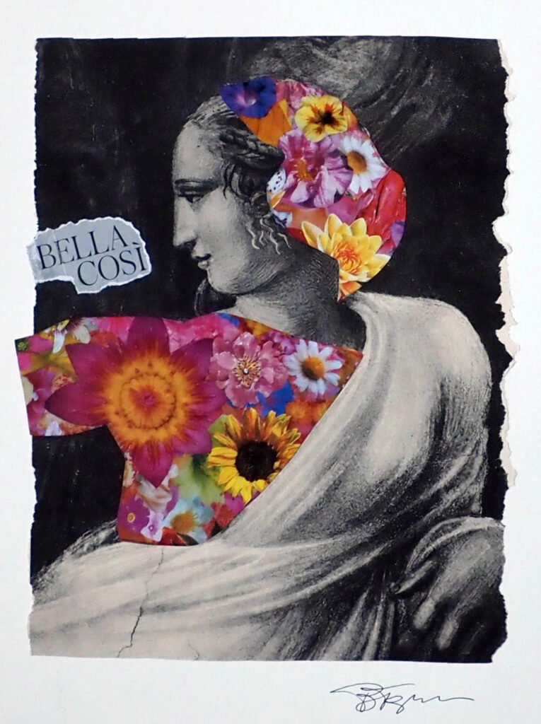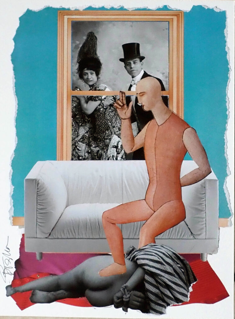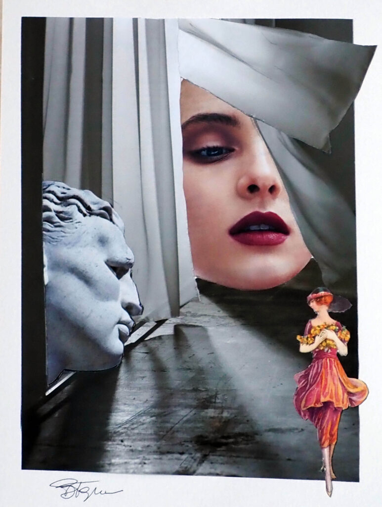 L’approccio all’arte del Collage nasce dalla mia esigenza interiore di espressione libera dalle costrizioni delle proporzioni e delle prospettive. Provengo dal mondo della fotografia ma ho sentito ad un certo punto la necessità di andare oltre la mera rappresentazione dello scatto virando verso altre trasgressioni e contaminazioni figurative che ho scoperto nell’arte del collage in tutte le sue variegate possibilità.