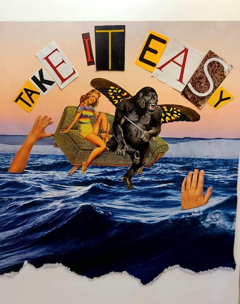 El collage es una re-composición, una re-creación de elementos ya existentes formando una obra nueva. Justamente eso es lo que hago (o trato de hacer) ahora con mi propia vida, re-ordenar mis pedazos de manera que lo que soy adquiera un nuevo significado.