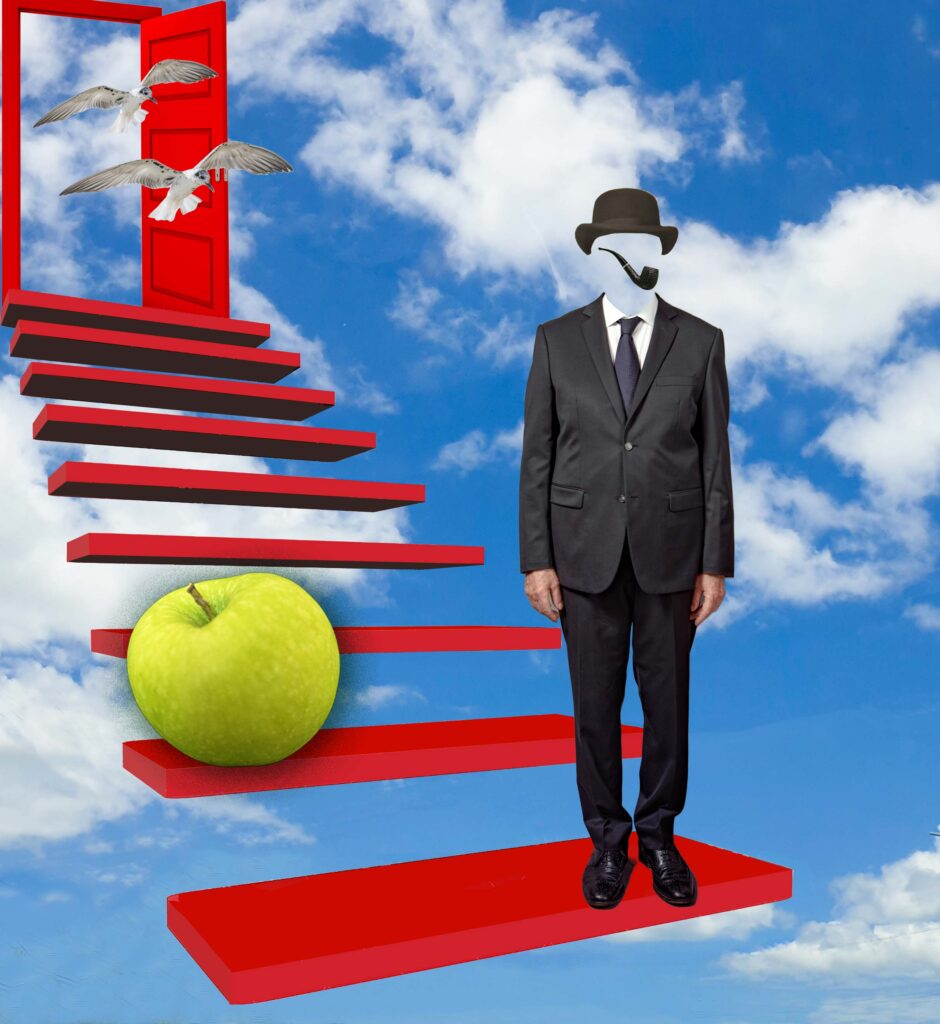 I do not have a specific style. I create absurd or impossible compositions. I am strongly influenced by surrealist artists, mostly René Magritte, a master of illusion. This is the reason why several of my collages pay tribute to him. Magritte used to declare: “I experienced the pleasure of freedom in painting the most unconventional pictures.” This could be applied to my digital collages.