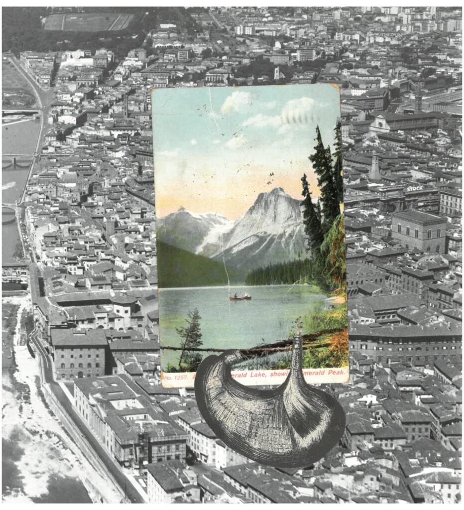 I found collaging – or collaging found me – in 2020. Immediately, after finishing my first cowboy collage, I felt a tingling of creative satisfaction and happy hours passed while wielding scalpel and glue. I couldn’t wait to get back to a piece. The possibilities excited me and still do. That one collage could take hours, incorporating hundreds of elements – and fail – while two elemental images, unrelated outside of the collage’s world, could be combined and make a beautiful kind of sense, this sense fascinates me. Increasingly I’m finding new forms to work within but ultimately the challenge is to keep this energy of discovery alive.
