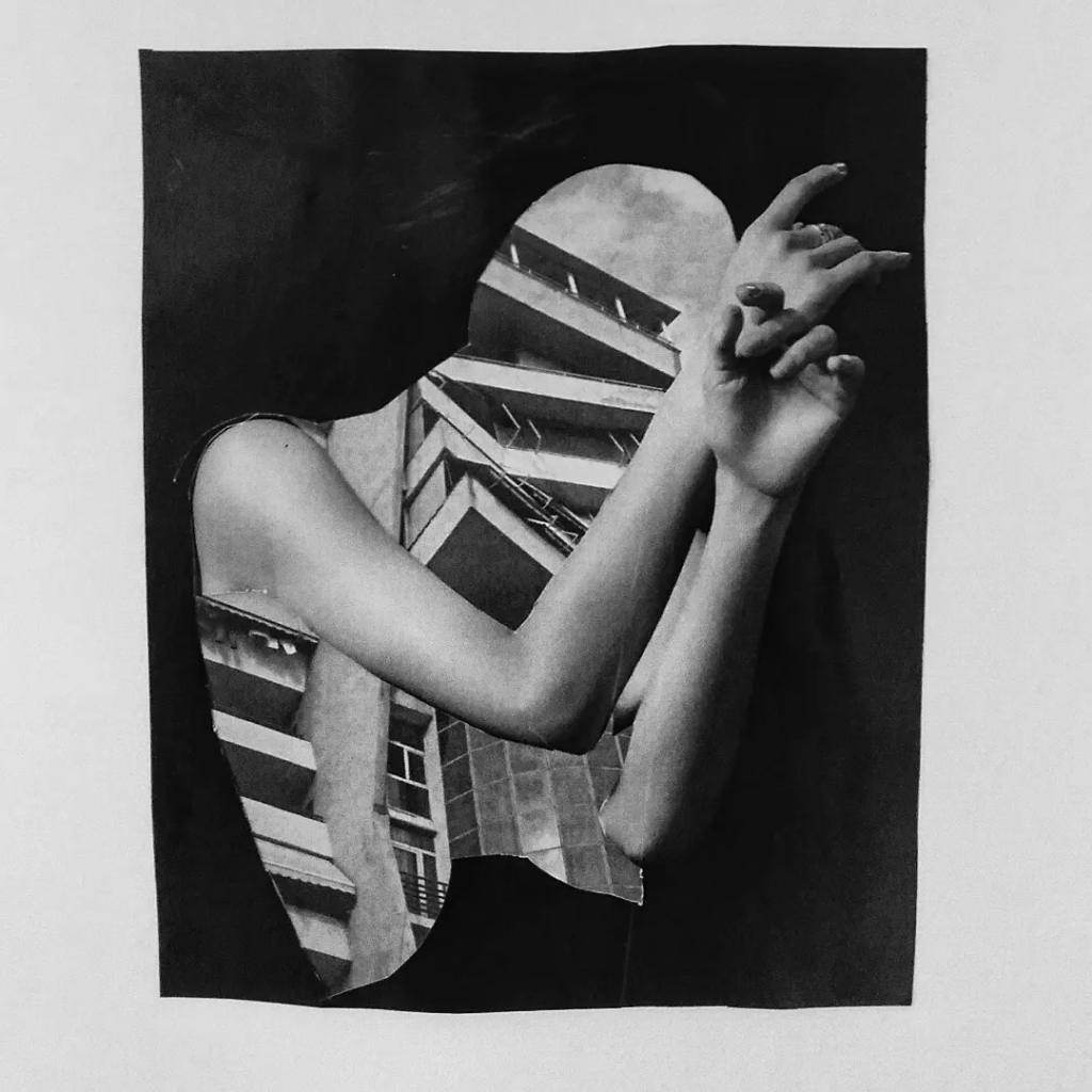 Mi chiamo Claudia Tiarez, ho iniziato a fare collage analogici a 12 anni, è sempre stato il modo più spontaneo per esprimere i miei stati d’animo, utilizzavo i giornali che trovavo e creavo, entrando in un mondo tutto mio.