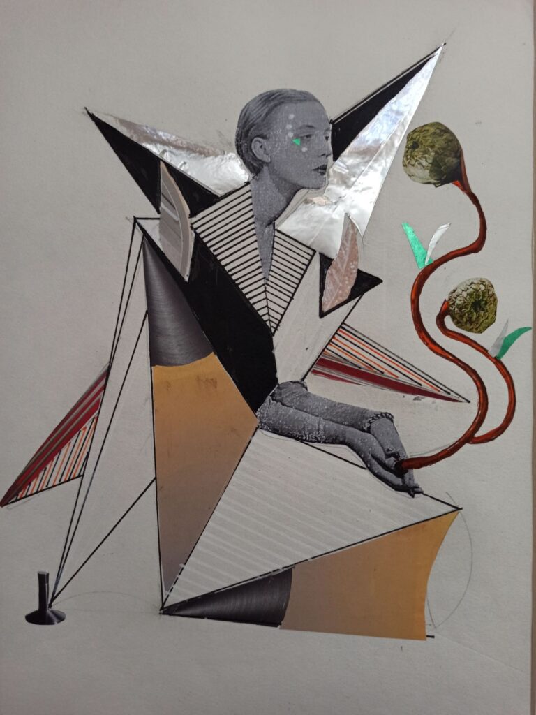 Tras un parón a nivel general, retomo… me reencuentro con el collage a través de un curso en el Círculo de Bellas Artes, que sirvió como hilo conductor para que en la actualidad y tras varios años, siga formándome y profundizando ,asistiendo semanalmente a un Taller en Madrid junto a otros artistas, un lugar mágico.
