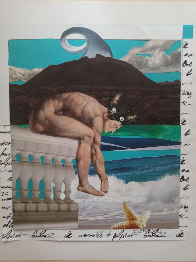 Mi primer contacto táctil de forma directa de componer collage fue cuando hacía Diseño y Estilismo en mi Galicia natal, aprendí también a utilizar , tinta, rotuladores, ceras, acuarelas, , y también el collage, la utilización de revistas de moda y dibujos me