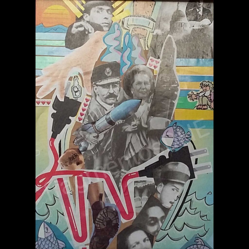 Mis collages no tienen una línea definida, buscan capturar la complejidad y el caos que nos rodea, puede haber crítica social y política no partidaria, puede haber moda, o simplemente un mutante de líneas y colores. La idea es transmitir libertad y espontaneidad, permitiendo que el espectador una libre interpretación con el deseo que se conecte con ellas.