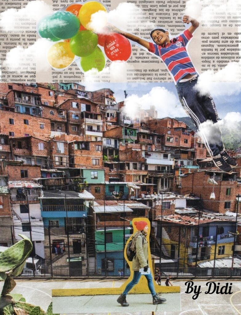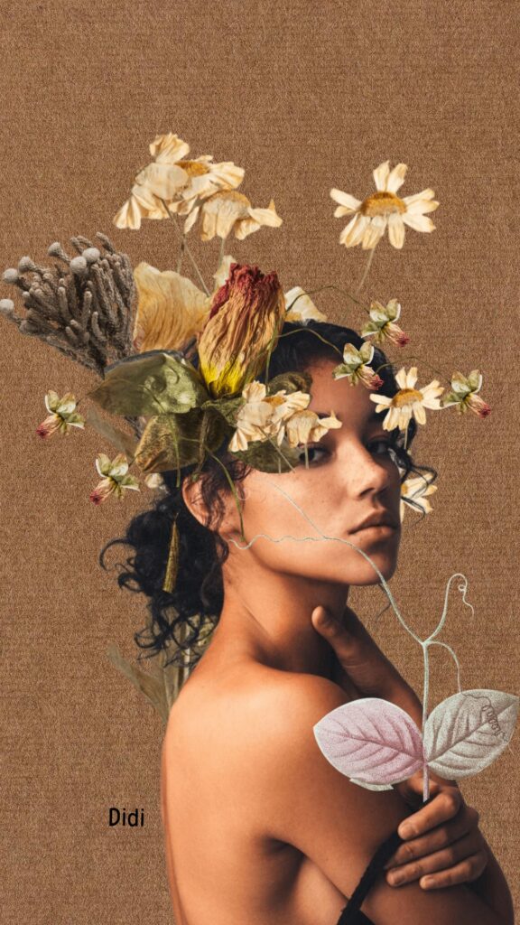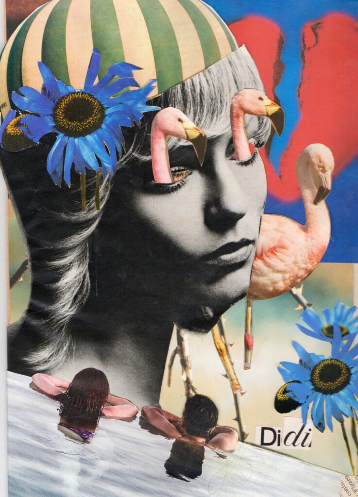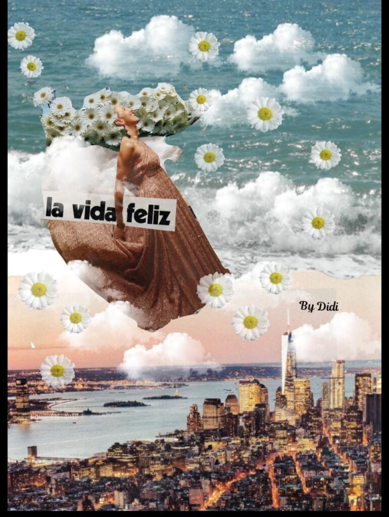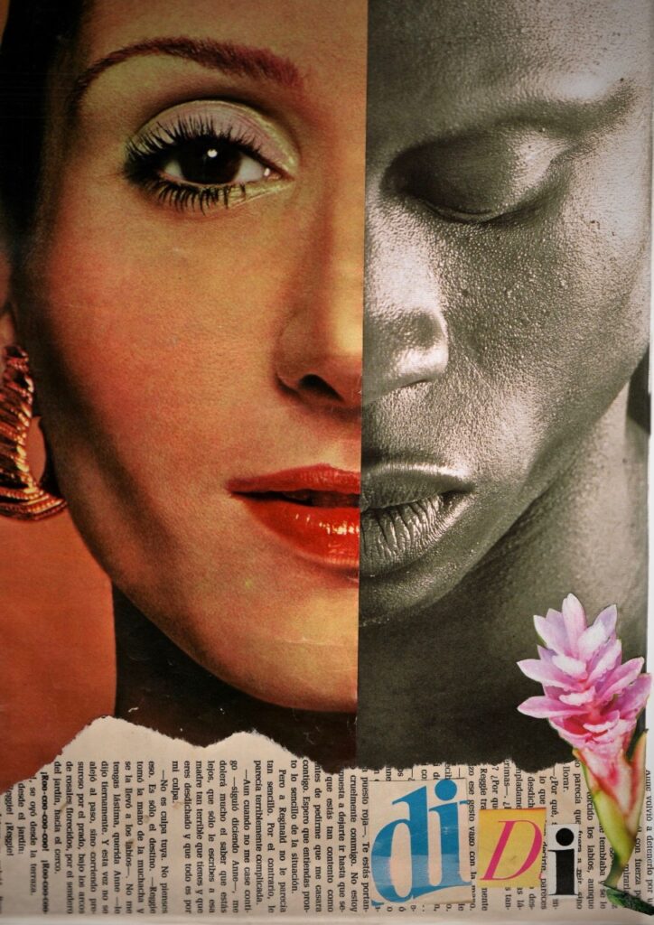 Para el año 2020, cuando comienza la pandemia y me encuentro pasando algunas circunstancias personales las cuales me llevan a vincularme más con un grupo de mujeres artísticas. Es ahí cuando me encuentra el collage, porque él me encontró a mí y no al revés. Empiezo con collage artesanal para continuar por el digital, siempre atravesado por la mirada de mujer. Mí temática central es la mujer y el arte, la mujer y la cotidianidad, la mujer y la naturaleza, la mujer y su historia etc.