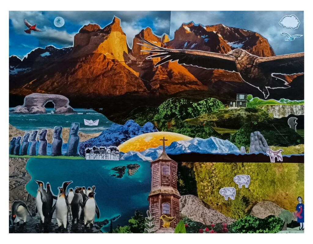 Soy Giovanni Telchi, oriundo de la Patagonia chilena y actualmente residente en Santiago. Mis primeros acercamientos al collage ocurrieron en mi adolescencia, durante mi enseñanza media en un liceo técnico profesional donde estudié Artes Gráficas. Posteriormente, de forma autodidacta, continué perfeccionándome y definiendo mi estética, estilo y técnica, lo que me permitió exponer en espacios alternativos.