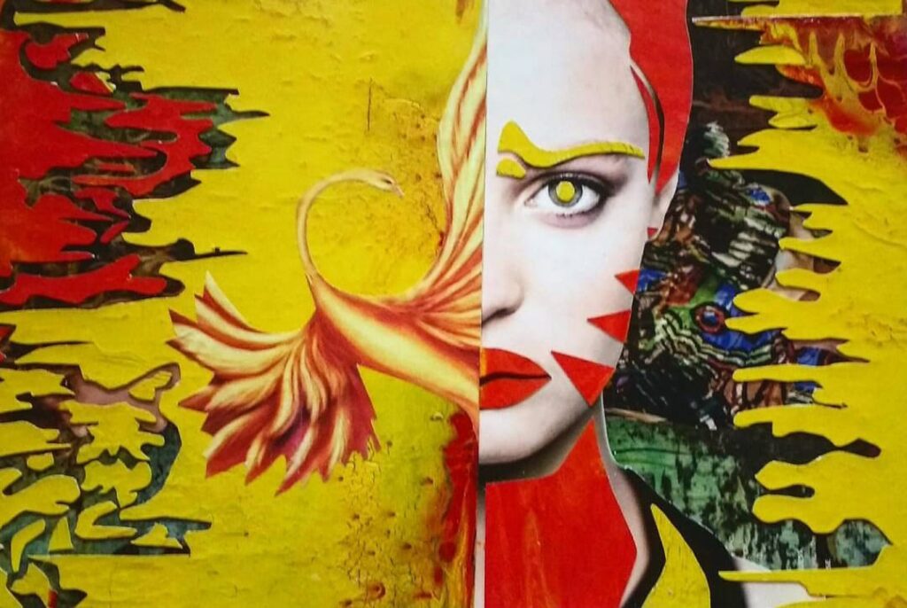 Mi obra se caracteriza por el uso del collage en técnica mixta, explorando lo kitsch, el surrealismo y el pop art como ejes estéticos. Me interesa jugar con los contrastes visuales, los símbolos y las texturas, otorgando relieve y profundidad a cada composición. Cada pieza es un espacio de experimentación, donde los materiales y colores dialogan entre sí para crear imágenes cargadas de simbolismo y narrativas abiertas.