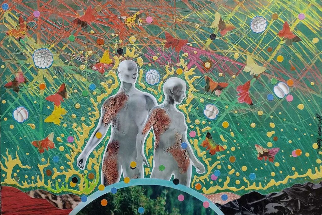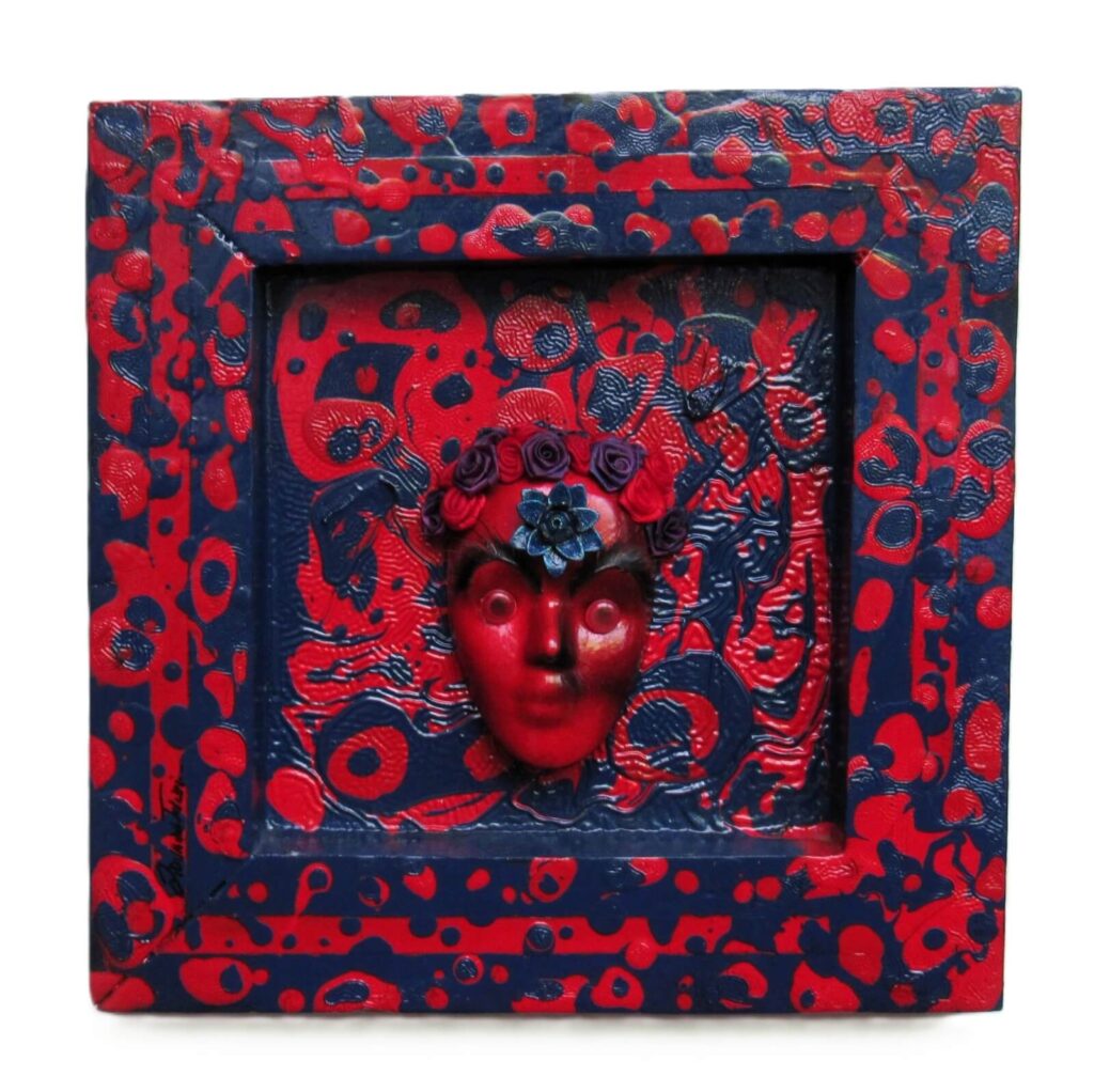 Mi propuesta estética está vinculada al kitsch, el surrealismo y el pop art, fusionados a través del collage mixto en la mayoría de mis composiciones. Lo que más me atrae es la experimentación con materiales y técnicas, ya que me permite dar relieve, texturas y mayor corporeidad a las obras. Constantemente exploro nuevas inspiraciones, ampliando así mis posibilidades creativas.