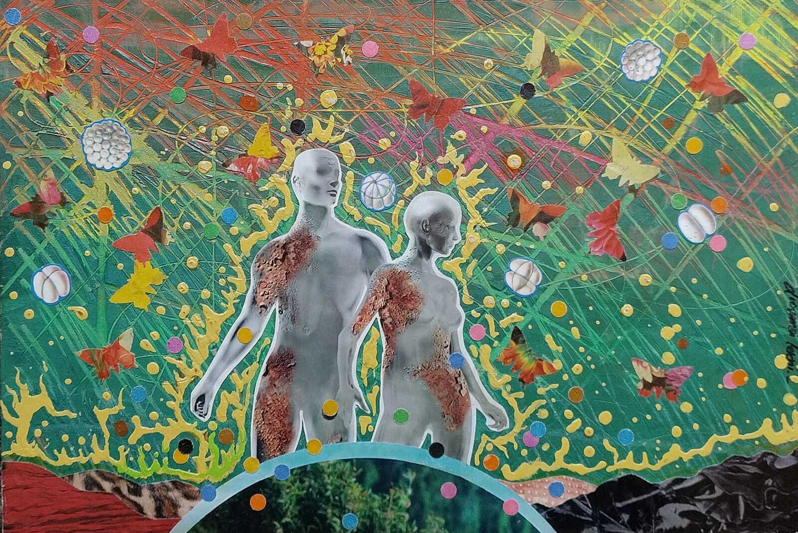 Mi propuesta estética está vinculada al kitsch, el surrealismo y el pop art, fusionados a través del collage mixto en la mayoría de mis composiciones. Lo que más me atrae es la experimentación con materiales y técnicas, ya que me permite dar relieve, texturas y mayor corporeidad a las obras. Constantemente exploro nuevas inspiraciones, ampliando así mis posibilidades creativas.