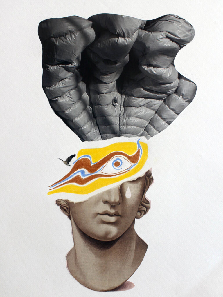 Cuando me mudé a Barcelona tuve la fortuna de encontrar maestras y compañeras que comparten la obsesión de unir imágenes, elementos y objetos, así que desde hace dos años empecé mi proyecto personal Represión y Libertad. Actualmente estudio animación en Stop Motion y hago collages en todas partes, a todas horas, algunos llegan al papel, otros se desvanecen en mi mente de collagista.