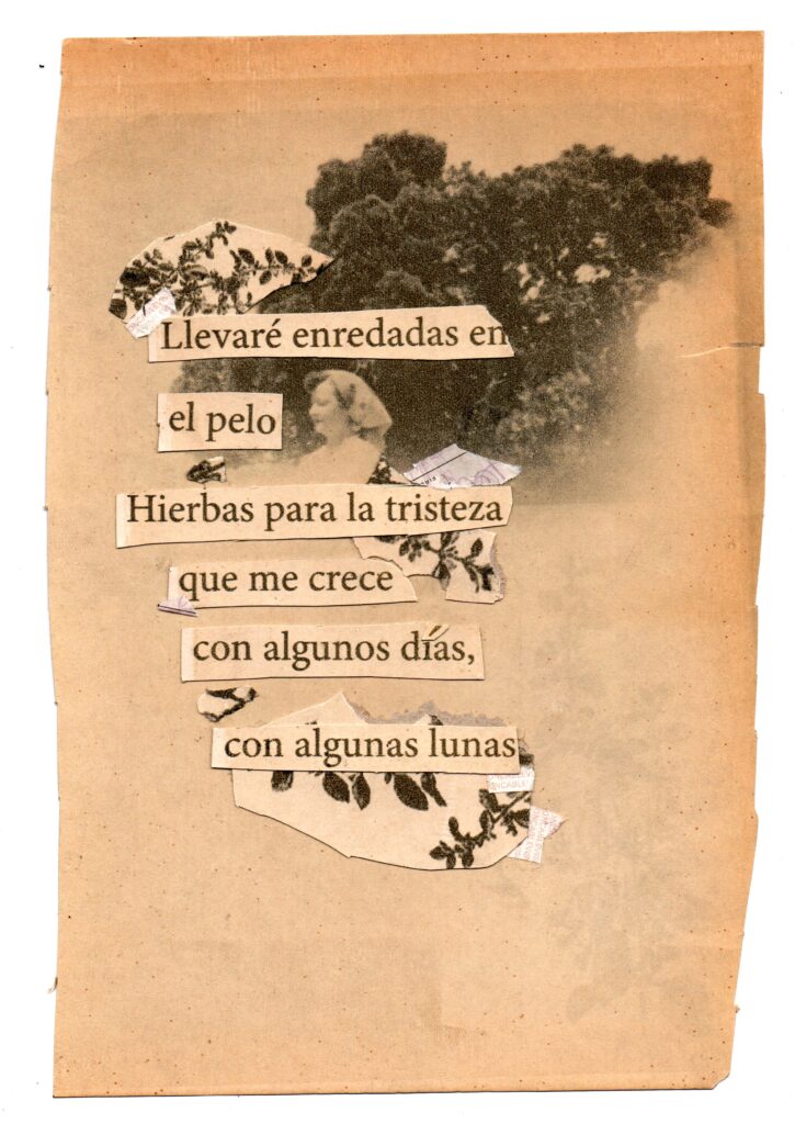 “Soy diseñadora gráfica y el collage llego a mi cuando tenía 21 años, (hoy tengo 29) gracias a una materia de la facultad, donde tenía que ilustrar un libro, desde ese momento no pude abandonar la técnica, me encanto y comencé a recolectar revistas, papeles amarillentos, libros antiguos (muchos de ellos encontrados en la calle) Me gusta la idea de rescatar del olvido material y darle vida con mis obras.