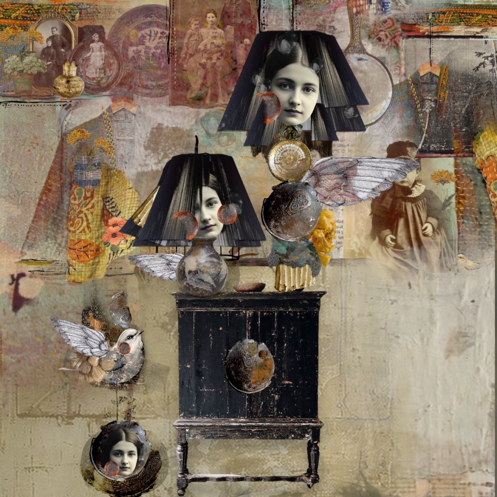 My works are primarily a blend of collage and mixed media techniques, with my favorite elements combining modern objects and very old and antique photographs. I pay attention to detail and enjoy making art that encourages viewers to look at it for at least a few minutes and appreciate its intricacies.