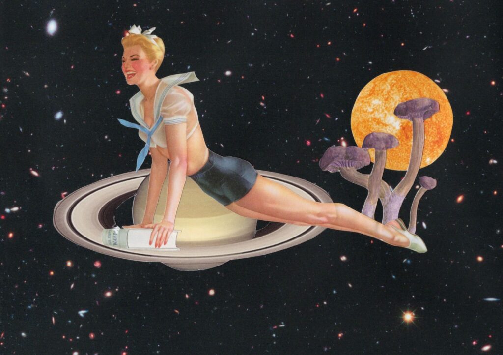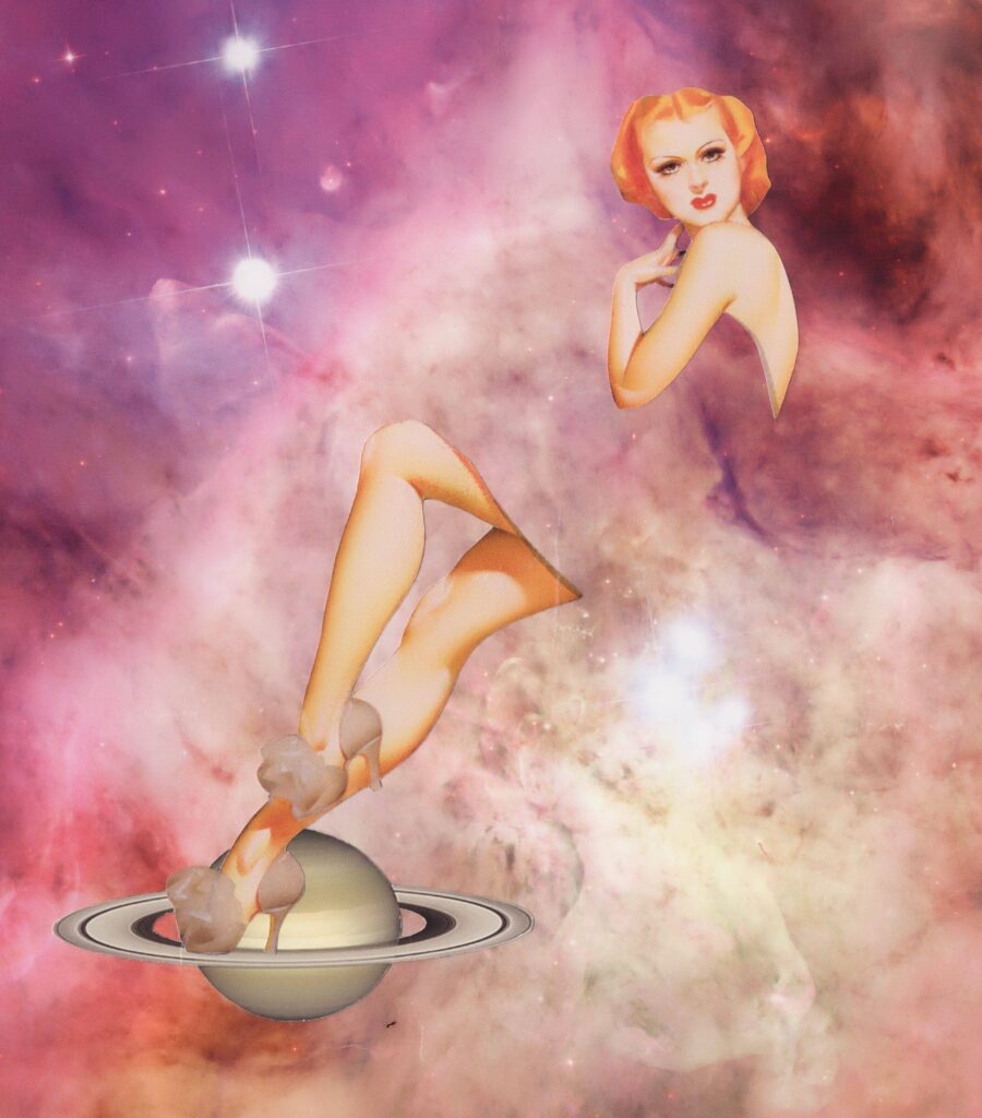 Llegué al collage a inicios de la pandemia, movida por la necesidad de canalizar todo el estrés que se respiraba en el ambiente. Fue un refugio silencioso donde pude soltar, casi sin darme cuenta, todo lo que sentía. Esta técnica me permitió expresar de forma inconsciente lo que no lograba poner en palabras. Con el tiempo, mi estilo fue tomando forma, y empecé a unirlo con otro de mis grandes intereses: la astronomía. Así nació una manera muy personal de crear, donde lo emocional y lo cósmico conviven en cada composición.