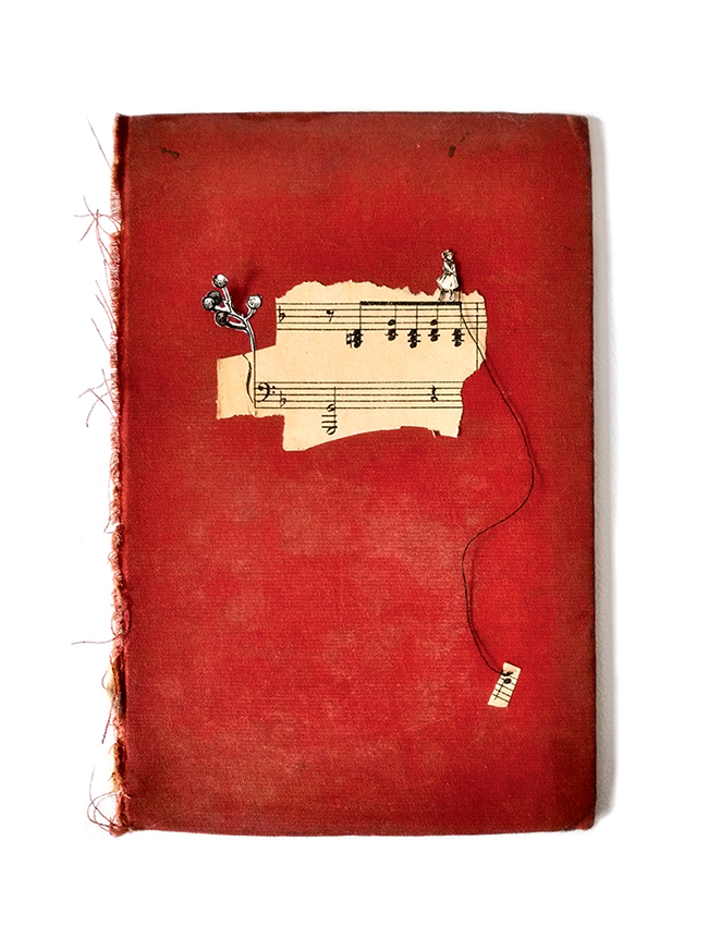 La construcción de las imágenes, el ensamblaje de las partes, se produce, en mi caso, desde la palabra: una idea, una frase, una canción, una característica dispara el encuentro con el material. El vacío que deja el lenguaje comanda la búsqueda . Búsqueda que es sin garantías y a la manera de la asociación libre, en un tiempo por fuera del tiempo de la prisa del rendimiento. Me convocan los recortes y colores que provienen de objetos de tiempos antiguos (libros, revistas, fotografias, etc.). El rescate del olvido. Entonces,  subvirtiendo tiempo y orden, pero también reparando, se producen nuevas imágenes donde los peces, los hilos, las texturas y las notas musicales son parte de lo que insiste en ellas.