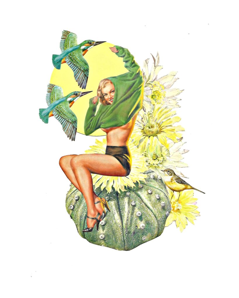 Descubrí el collage de pura casualidad, me apunte a un taller que vi anunciado en redes sociales. Llegué un poco tímida, sin saber muy bien, que íbamos a hacer. Quedé fascinada y comencé a ir todas las semanas. Ya han pasado casi dos años y descubrir el collage ha sido lo mejor que me podía haber pasado en ese momento.