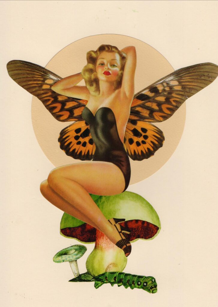 Disfruto perdiéndome en los mercados y librerías de segunda mano para encontrar tesoros. Selecciono el material que voy a utilizar cuidadosamente. Me encantan las pin up y la estética de los años 50, por ese aire vintage, elegante y romántico.