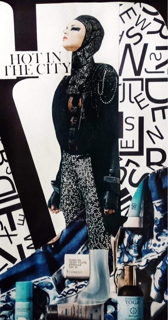 Explorando revistas antigas e catálogos, descobri a riqueza de texturas, cores e formas disponíveis para criar narrativas visuais. A possibilidade de manipular imagens preexistentes para transmitir novos significados me fascinou profundamente.