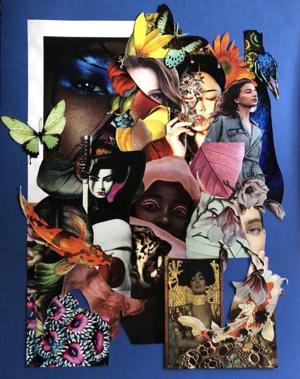 Me siento muy atraída por imágenes en general con colores fuertes, tanto de flores y naturaleza como también alguna figura humana. Admiro la fotografía, la pintura, me encantan las texturas y por sobre todo la buena estética. Mi trabajo está inspirado tanto en artistas como en la maravillosa naturaleza que nos rodea, interviniendo las imágenes hago mi propia interpretación. Hacer collage me transporta, me traslada a un lugar muy dentro mío, casi sueño, al que recurro cada vez que necesito encontrarme.